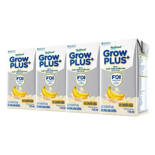Lốc 4 hộp sữa dinh dưỡng pha sẵn GrowPLUS Bạc hương chuối 110ml