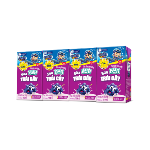 Lốc 4 hộp Sữa trái cây Kun hương nho 110ml