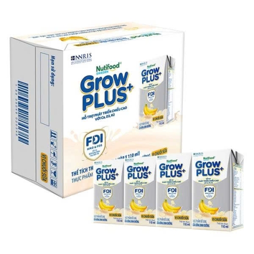 Lốc 4 hộp sữa dinh dưỡng pha sẵn GrowPLUS Bạc hương chuối 110ml