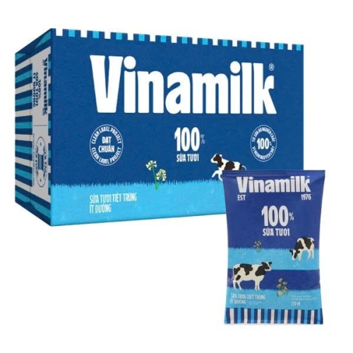 Thùng 48 bịch sữa tươi tiệt trùng Vinamilk ít đường 220 ml